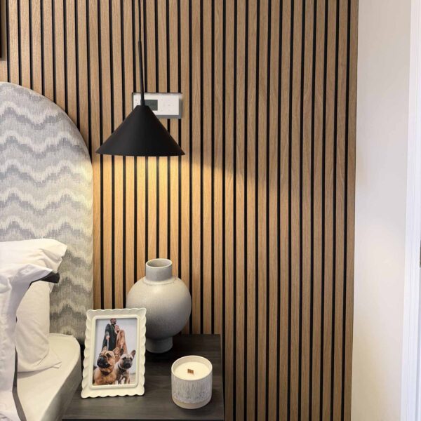 Its modern, clean lines, will add a touch of natural beauty and warmth to any space. Choosing our Oak Slat Wall will enhance the overall aesthetic of any room and create a welcoming atmosphere.