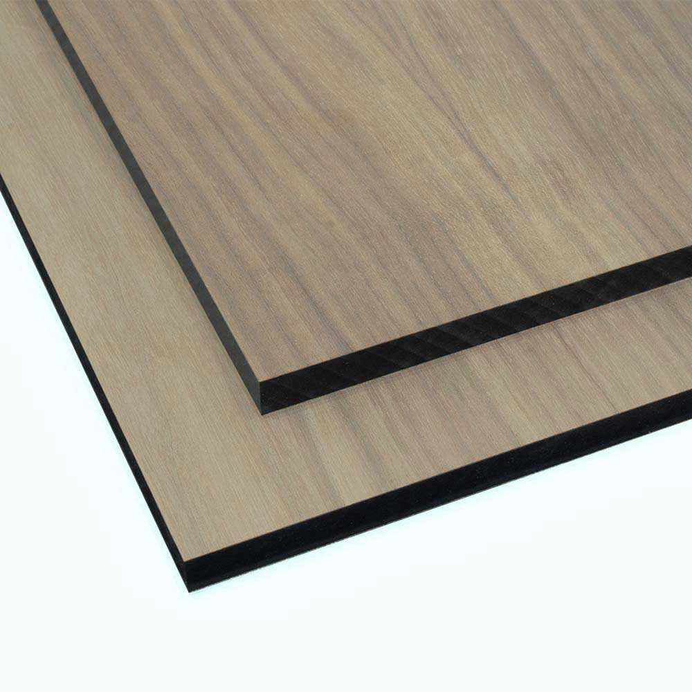 A real wood Walnut veneer faced black dyed MDF board is produced by Finsa using their AH4 Nogal Merlot veneer over their black dyed MDF core.