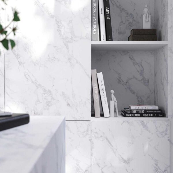 In our opinion, this Unilin 0F252 Carrara Frosted White delivers a very good likeness to real marble. The multi-tonal grey veins set against a matt white (very, very light grey) background works well and looks great.